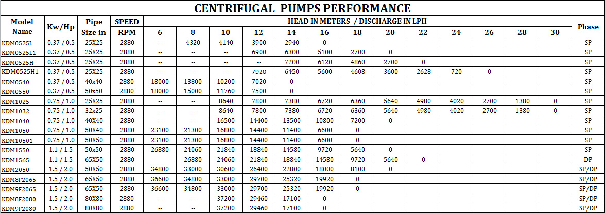 The pump components are made of selective materials under strict quality control which are suitable for Domestic and Agricultural pumps. These pump sets are available from 0.5HP to 2.0HP in single/three phase configuration.